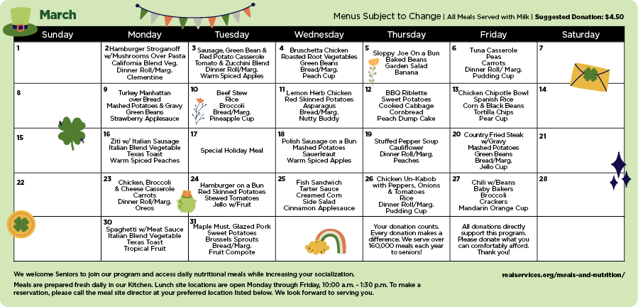 Meals on Wheels is funded in part by the Older Americans Act, local foundations, and community donations. Meals are provided at no cost to participants, and no one is ever denied service because of an inability to donate. Those who are able are encouraged to contribute toward the cost of their meals, and every gift helps sustain the program for others in need.