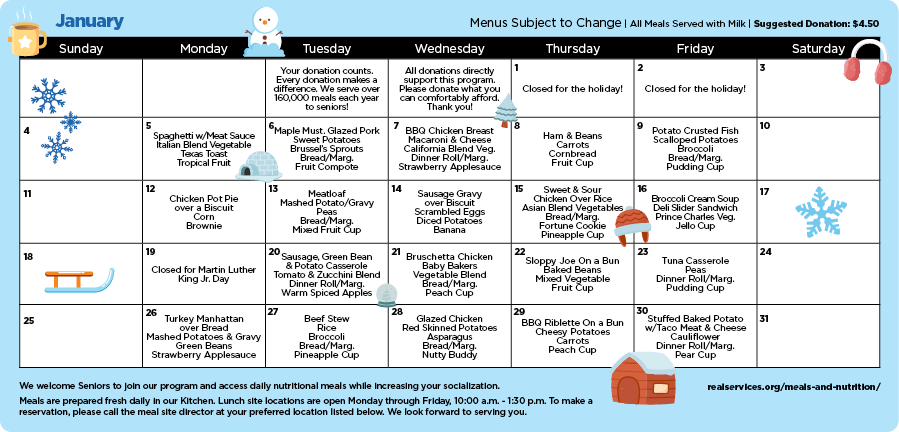 You can also view our Monthly Nutritional Meal Calendar to see what’s being served this month.